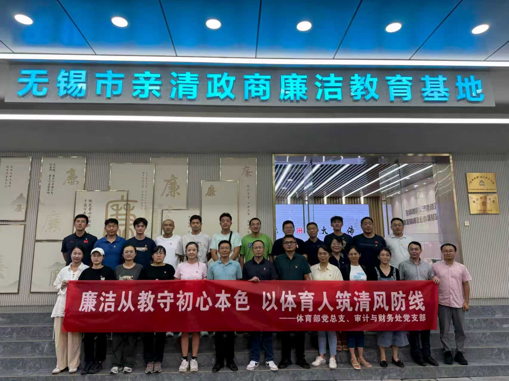 为强化党员廉洁自律意识,筑牢拒腐防变思想防线,9月30日,体育部党总支联合审计与财务处党支部赴无锡市亲清政商廉洁教育基地,共同开展“廉洁从教守初心本色 以体育人筑清风防线”沉浸式廉洁从教主题党日。