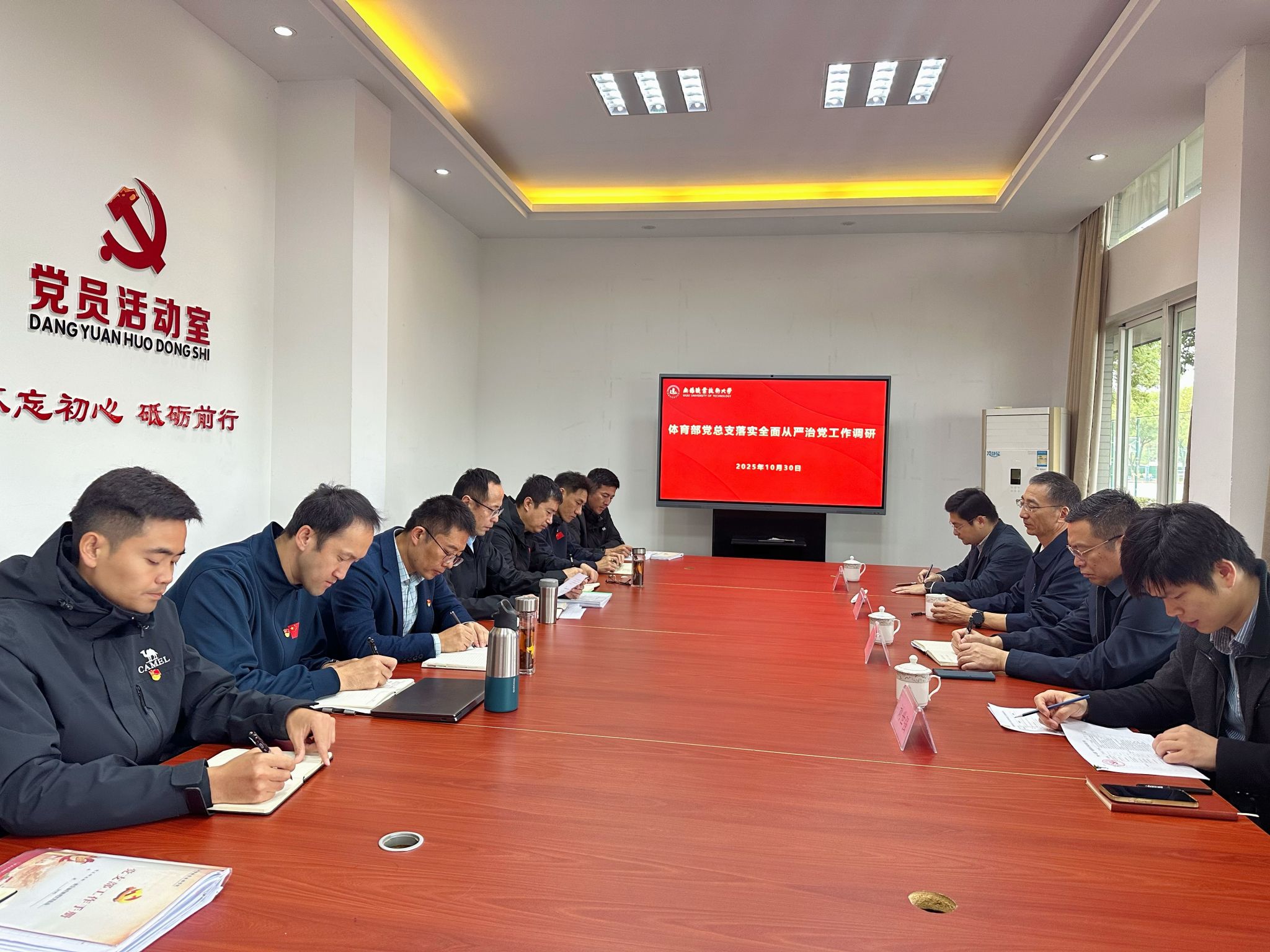 10月30日,校党委书记龚方红、副校长储开峰来到体育场106会议室,调研体育部党总支落实全面从严治党工作。组织部负责人,体育部班子成员、党总支委员等参加会议。