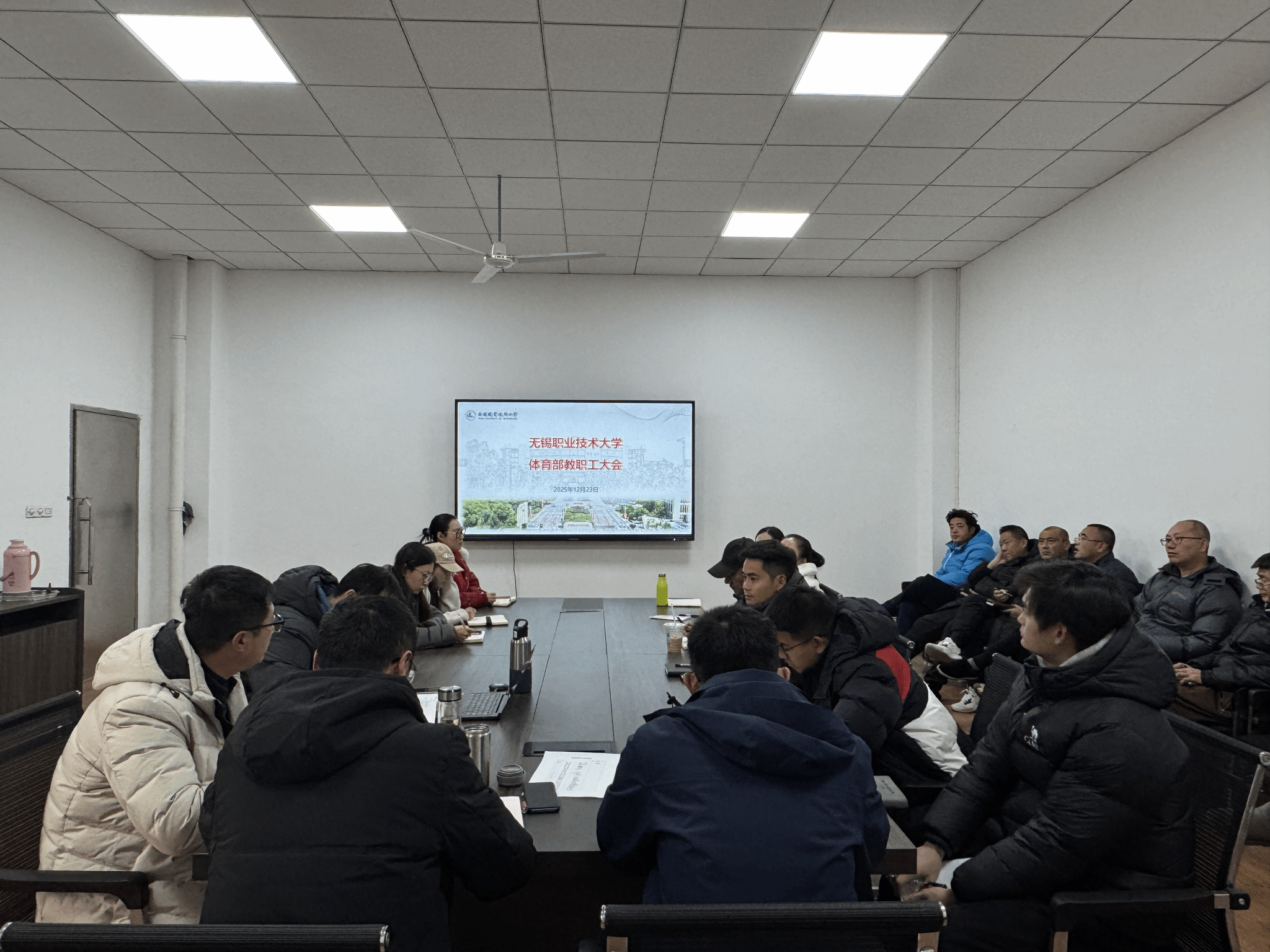 会上,体育部主任冯伟就《无锡职业技术大学体育部学术分委员会章程》作了详细汇报,经全体教职工审议,该办法获得一致通过。接着根据《无锡职业技术大学体育部学术分委员会章程》,在符合条件人员自荐的基础上,确定职务委员、推选委员和特邀委员人选,并经全体与会人员讨论通过。办公室主任刘超详细汇报了2025年度财务收支状况。最后宋静辉发表了总结讲话,对部门一年来取得的各项成绩表示肯定,希望大家群策群力,按照学校高质量发展要求,努力谋划好2026年度体育工作。