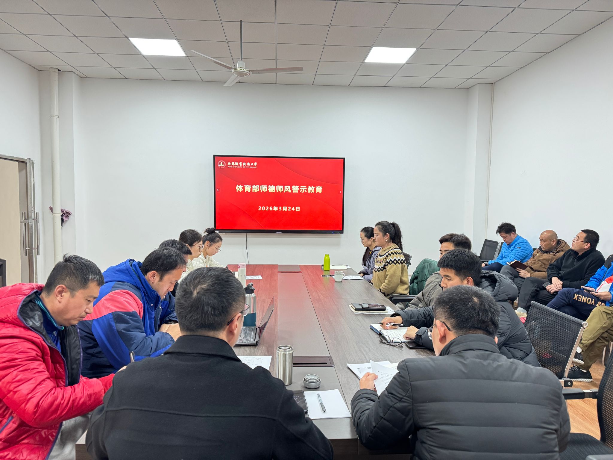 会议认真学习了《教育部等六部门关于加强新时代高校青年教师队伍建设的指导意见》《无锡职业技术大学师德失范行为负面清单及处理办法》《无锡职业技术大学教学事故认定与处理办法》等文件,组织观看了高校领域警示教育、廉洁教育微视频。会上,宋静辉结合教育领域反面典型案例,深入剖析了师德失范行为产生的根源,提醒全体教师要以案为鉴,时刻绷紧师德师风这根弦,始终把立德树人作为教育教学的根本要求,锻造高素质体育教师队伍,筑牢体育教育育人根基。