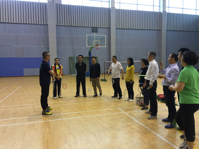 全运会冠军唐益老师为教职工讲解羽毛球技术动作